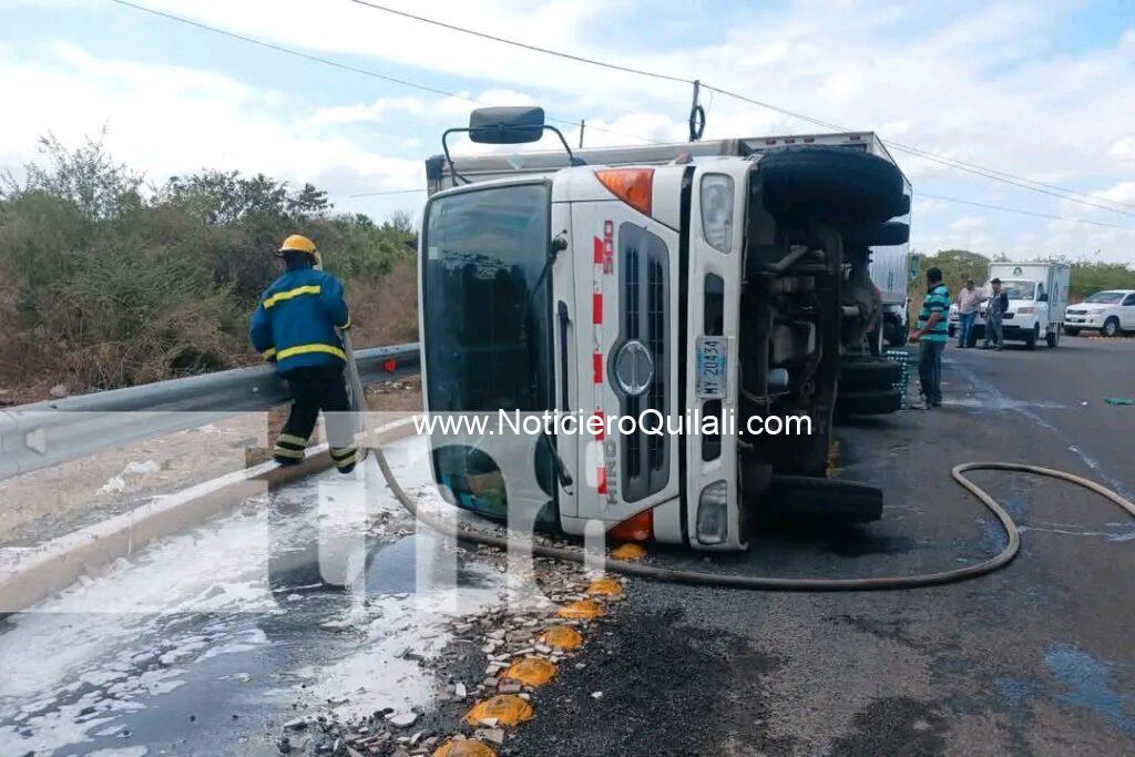 Cuantiosas pérdidas económicas dejó el vuelco de un camión cargado con más de 3,000 cajillas de huevos en la rotonda de Tipitapa, kilómetro 22 de la Carretera Panamericana Norte.