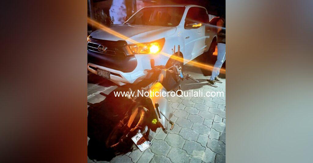 Colisión entre camioneta y motocicleta deja daños materiales en Macuelizo